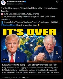https://www.PrometheanAction.com — Barbara Boyd frames Tuesday as a major display of power by Donald Trump, highlighting three “inflection points”: King Charles’ visit, new DOJ actions, and Iran’s economic unraveling. She argues the White House ceremony masked a struggle over the “special relationship,” citing FDR’s anti-colonial demands and interpreting Trump’s beehive visit as signaling America as the new “master,” while Charles’ address to Congress is portrayed as a subtle critique of Trump via references to checks and balances, NATO, Ukraine, and environmental themes. Boyd then details DOJ moves: an indictment of Jim Comey over his May 2025 “86 47” seashell message, an indictment of Fauci aide David Morens for an alleged Wuhan lab cover-up, and federal raids targeting large-scale entitlement and loan fraud she links to Democratic networks. Finally, she cites Trump’s claim that Iran is collapsing under oil and Treasury pressure, alongside the UAE leaving OPEC and shifts in global oil shipping and insurance.